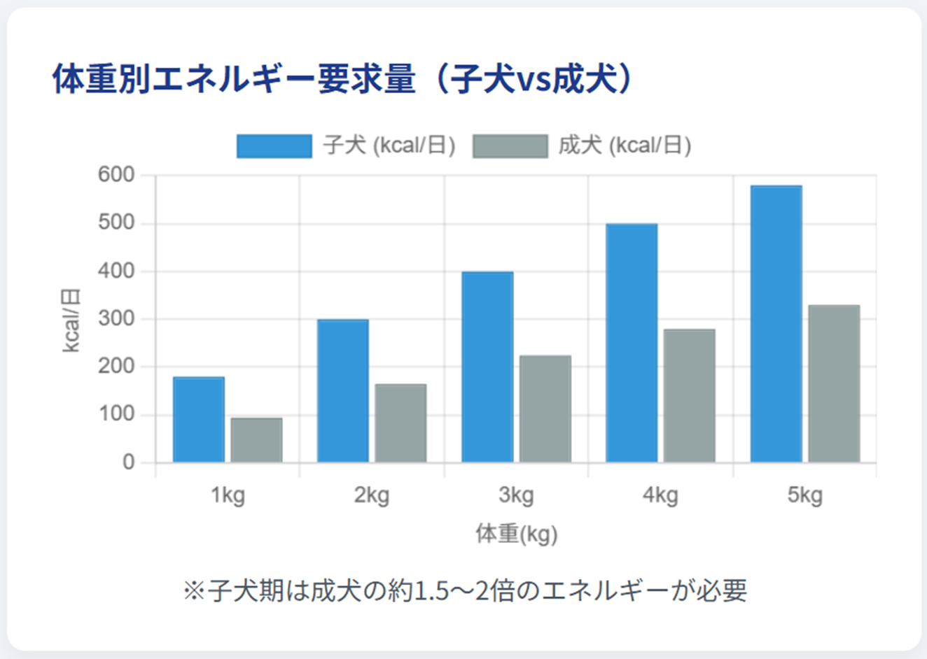 特に小型犬は成長速度が速いので、カルシウム不足にならないよう配合量に注意します。ただし過剰なカルシウムは結石など別の問題を誘発しかねないため、総合栄養食としてのミネラルバランスを厳密に守ることが必要です。